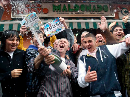 Kort tid derefter sender tv-stationerne direkte fra de enkelte lotteriadministrationer, hvis indehavere åbner flasker med sprudlende cava og fejrer æren af at have solgt en vinderkupon.