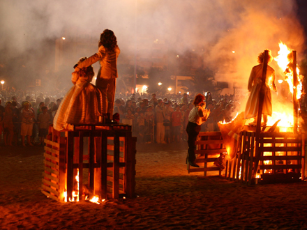 Det hele krydres med fyrværkeri, og strandfesterne, 'verbenas', fortsætter til langt ud på natten.