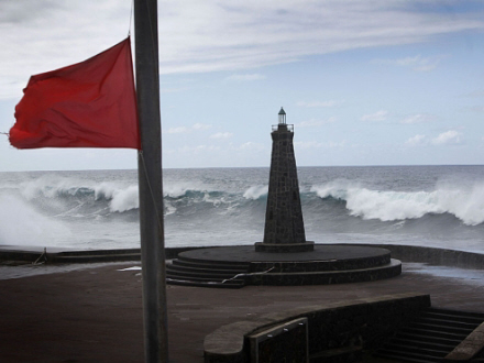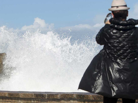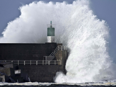 En kæmpebølge omslutter molen i A Garda