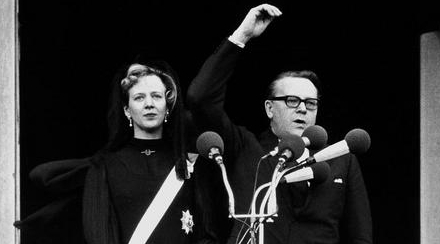 Statsminister Jens Otto Krag forkynder Frederik den 9.s død og udråber Margrethe den 2. som hans efterfølger og ny monark