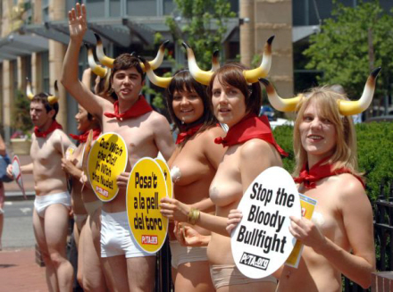Nøgen og blodig protest mod tyrefægtning