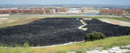Der er tale om Seseña, der ligger på grænsen mellem Madrid og Toledo. Men nu skal gummibjerget væk, og dækkene forvandles til sandaler og fortove.