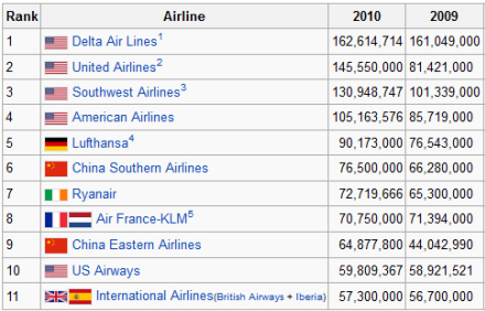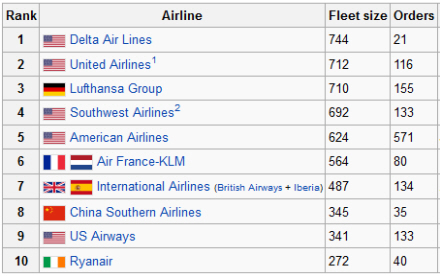 Verdens 10. største målt på flyflåde