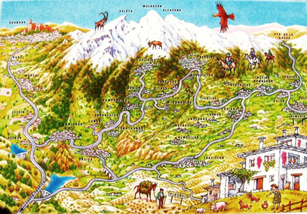 På denne tur kører vi langs den nordlige side fra Granada til passet Puerto de la Ragua og derfra ned til det naturskønne La Alpujarra, der ligger syd for den sneklædte bjergtop.