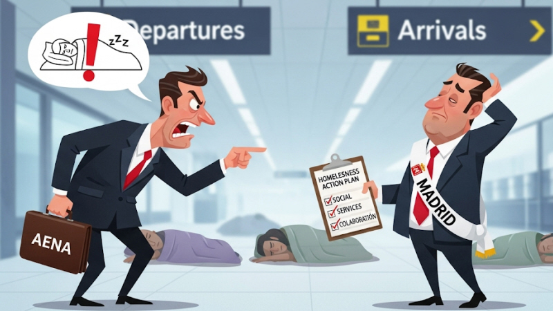 Lufthavnsoperatør giver Madrids politikere skarp kritik angående hjemløse, men bydronning er lavet af teflon.