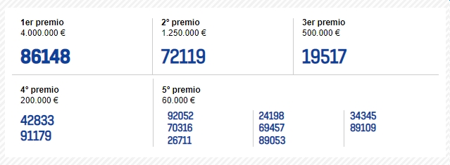 Det nøjagtige præmiebeløb er på 2,408 millioner euro, hvilket er det samme beløb som sidste år, og trækningen af El Gordo giver i alt 4 millioner euro.