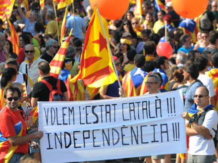 Tusindvis af catalanske nationalister deltog i går i en kæmpe uafhængigheds-demonstration i Barcelona under sloganet "Catalonien, ny stat i Europa".