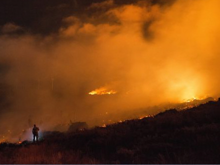 Der er indsat styrker fra militæret, en helikopter og 250 brandfolk, der lige nu knokler med at slukke branden.