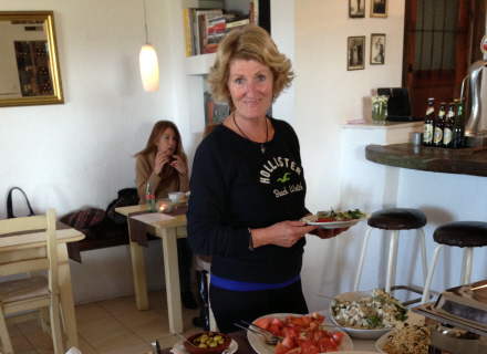 To trin inde mødte vi en smilende Åse, der bød velkommen, samt et smukt anrettet bord med den skønneste buffet. Vi blev overvældet af dette uprætentiøse sted, hvor vi omgående følte os velkommen. Flere andre gæster sad bænket og nød retterne, - og stadig flere biler kom hele tiden til.