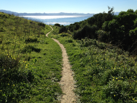 Høj klar luft og flot udsigt til den spanske enklave Ceuta. Skøn natur med græssende køer, grønne skrænter og de yndigste små vilde blomster.