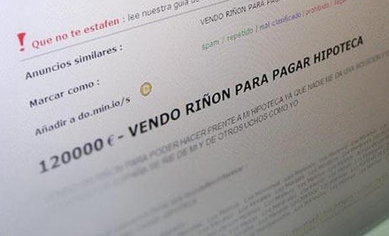 På en hjemmeside for køb og salg af diverse produkter, findes der også eksempler på organer i udbud. Hvis man søger på ”venta de riñón” (salg af nyre), dukker følgende annonce op: