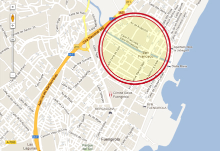 Der er tale om et øde område, som normalt kun bruges af hjemløse og grafitti-malere. Broen over Arroyo Real ligger 300 meter fra strandkanten tæt ved flere beboelsesområder, og der er kun adgang til området i bil fra Calle San José nær Paseo Marítimo i Fuengirola.