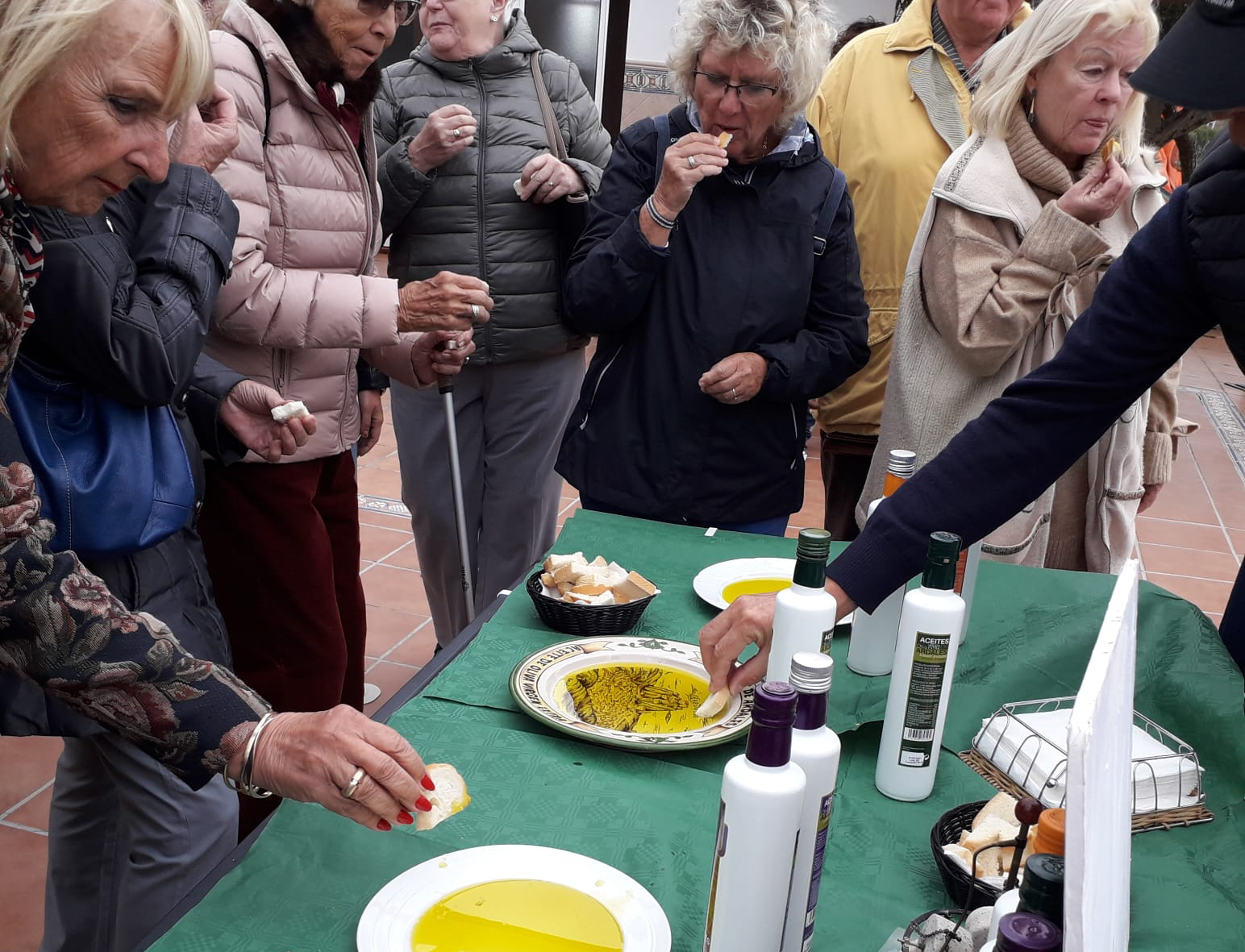 Vores første stop er olivenfabrikken i Ardales, hvor vi hører om olivenoliens vej fra frugt til flaske. Hvordan ser man forskel på god og dårlig olie? Og så smager vi selvfølgelig på varen.