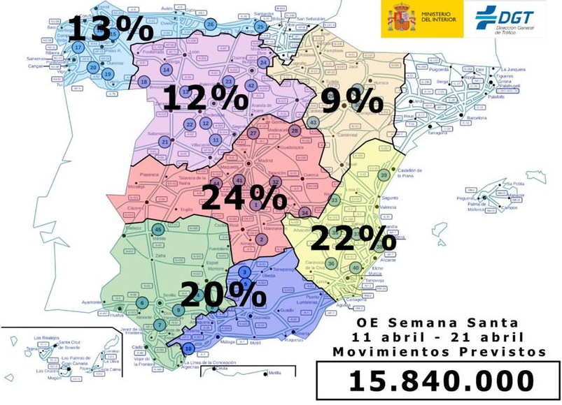 Trafikdirektoratet, DGT, er klar med sine påskeprognoser, der viser, at flere end 15,8 millioner forventes at foretage langdistancerejser på vejene.