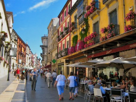 Spain is More samler trådende i den hyggelige gade 'Calle Ancha' (den røde bygning i midten af billedet)
