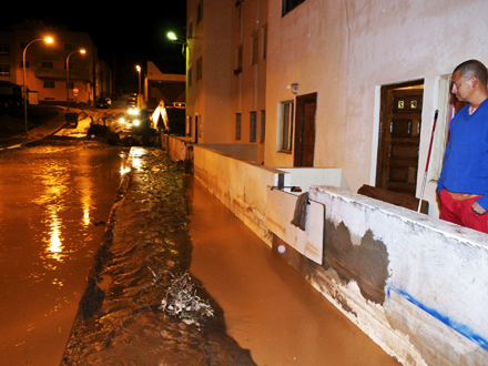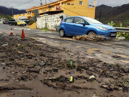 I Mogan Kommune på Gran Canaria er flere huse og butikslokaler blevet oversvømmet. Her rådede myndighederne i går eftermiddag indbyggerne til at blive inde. Landevej GC-200 var i går en overgang spærret for trafik på grund af jordskred, men er nu farbar igen.