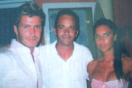 Russell brugte et foto af sig selv med det berømte stjernepar til at overbevise børn om, at han var Beckhams personlige tryllekunstner.