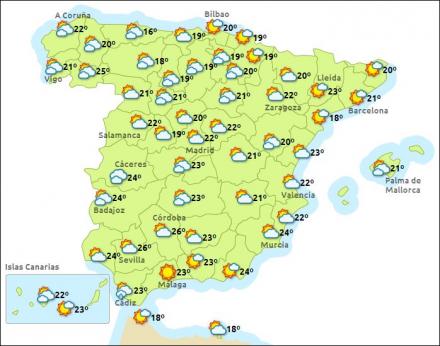 Der er udsigt til 30 graders varme i flere syd- og midtspanske provinser som Granada med 29 grader, og 28 grader i Ciudad Real, Córdoba, Toledo og Sevilla.