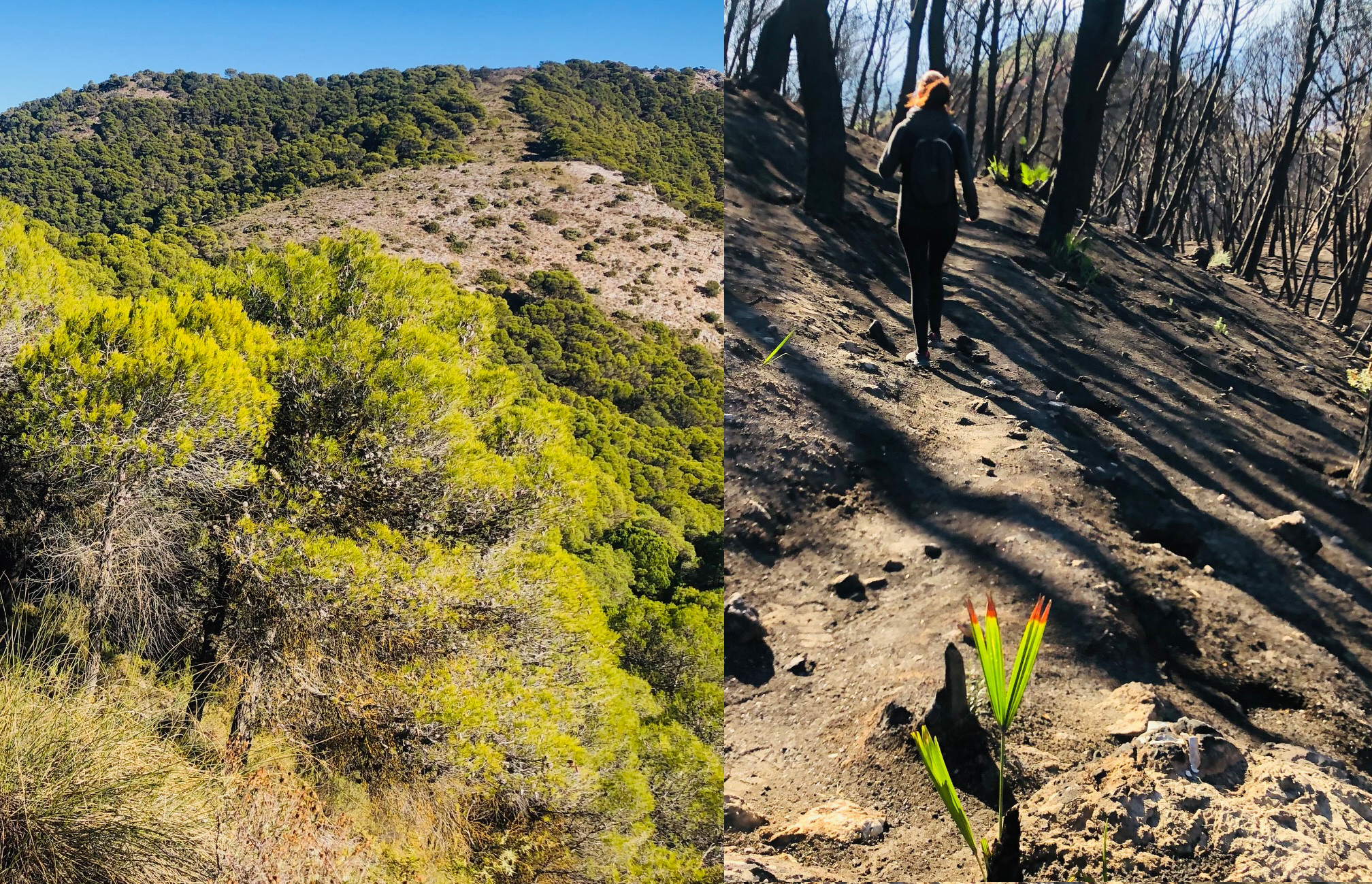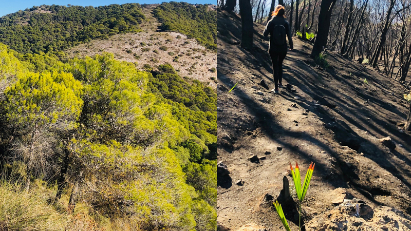 På tur i de brændte skovområder i Mijas’ bjerge
