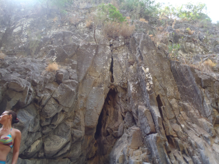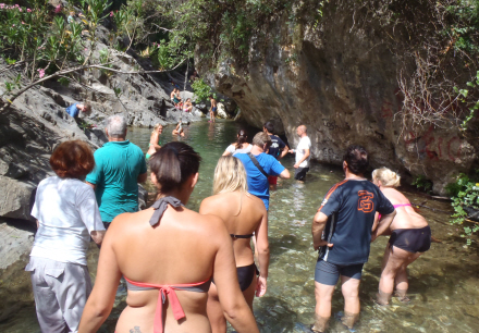 Men det er de færreste, der har taget turen mod strømmen op ad vandløbet. Efter et par hundrede meter er der en lille lagune med krystalklart vejr. Herfra kan du svømme og kravle videre op gennem terrænet og klipperne for til sidst kaste sig ud fra syv meters højde. Du kan også blive her og nyde vandet.