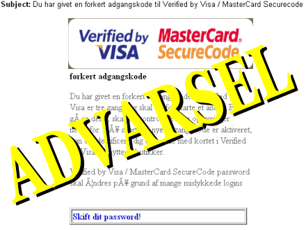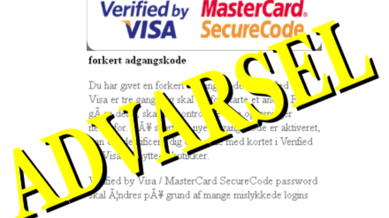 Tusindvis af danskere har i de seneste dage modtaget en mail om forkert adgangskode til 'Verified by Visa'. Afsenderne beder om personli...