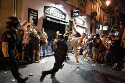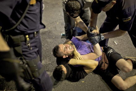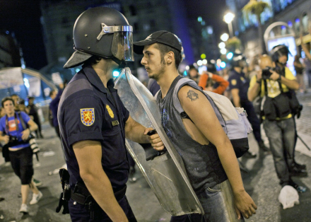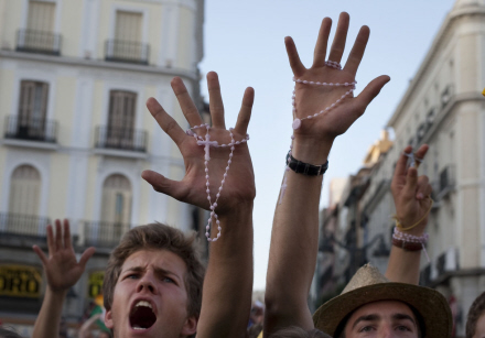 Protesterne gik værst for sig onsdag aften, hvor hundredvis af betjente måtte holde unge demonstranter og katolikker på afstand af hinanden i Madrid centrum. Syv blev anholdt og 11 lettere såret. Se billederne her