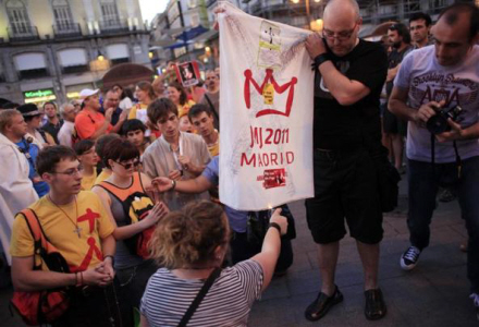 Men der var også forsonende ord tilovers for demonstranterne, som siden tirsdag har indtaget store dele af Madrid centrum. De protesterer mod, at det kriseramte Spanien skal bruge millioner af euro på sikkerhedsforanstaltninger og festivitas i forbindelse med besøget.