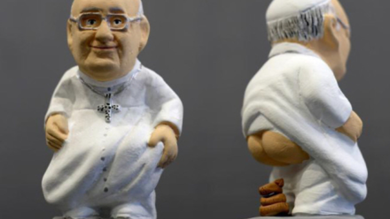 Pave Francis er tilsyneladende populær i Catalonien. Så populær, at man i år kan give ham rollen som ”caganer” i sit krybbespil. Et ægte catalansk krybbespil indeholder nemlig altid en bukseløs figur i fuld gang med at lave ”Nummer 2”.
