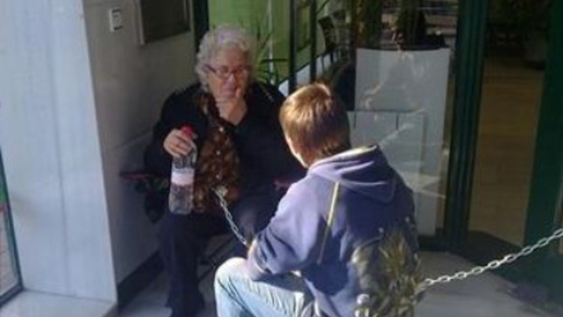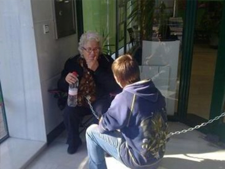 En kautionering for sønnens banklån endte med, at 76-årige Ángeles Belmote fra Almería blev sat ud af sit hjem, da afdragene ikke blev betalt. Det gjorde hende så vred, at hun i protest tog ned i banken og lænkede sig fast til en dør. Hun nægtede at følge personalets ordre om at flytte sig, men blev til sidst smidt ud af politiet.