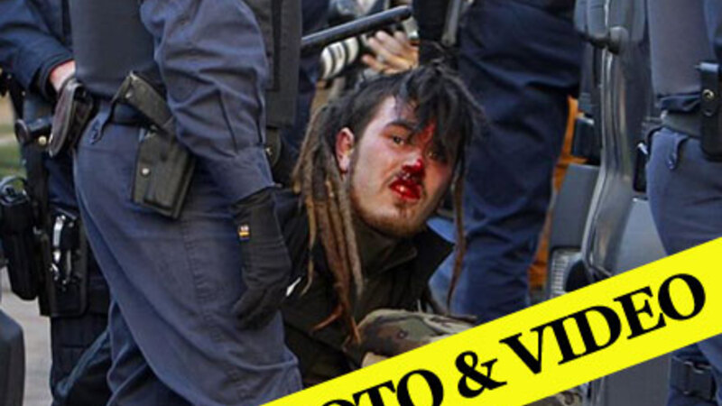 En video, der ligger på flere spanske aviser, viser politiets noget hårdhændede behandling af demonstranterne, i et enkelt tilfælde ser man betjente smække to unge kvinder op mod en bil.