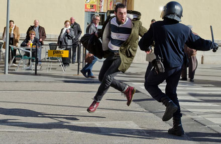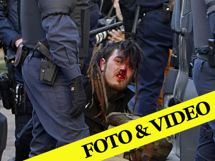 Kniplerne sad løst, da spanske urobetjente mandag slog hårdt ned på en demonstration i Valencia. Politiet anholdt 25 unge - seks af dem mindreårige - og 12 er stadig tilbageholdt i dag. 13 blev såret, heraf var de 11 betjente.