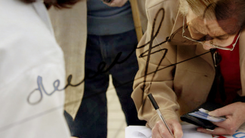 Selv om politiet forsøgte at fjerne bordene med underskriftindsamlingerne, lykkedes det ikke takket været massive protester fra borgerens side.