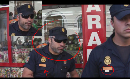 Videoen viser mindst otte betjente i kampuniform krydse en vej i det centrale Madrid. Bagfra, kan man se en betjent slå sin arm ud mod en piges ansigt, men om han prøver at standse hende eller slår hende, er lidt uklart. Hun ryger tilbage, som om hun bliver ramt, men kameravinkelen i kontaktøjeblikket gør, at man ikke ser det præcist. Idet en mandlig ven slæber pigen væk, kan man se mindst én politimand slå ham bagfra med sin politistav.