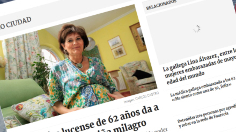Lina Álvarez fra Lugo, Galicien, satte gang i en ophedet debat i Spanien om reagensglasbørn og fertilitetsbehandling generelt, da det kom frem at hun var gravid i så fremskreden en alder.
