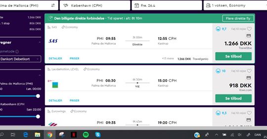 Klokken 13:10 suser de af sted med Lufthansa fra Mallorca, og efter et kort visit i Frankfurt lander duoen i Kastrup klokken 18:15.