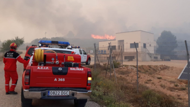 Branden bredte sig og blev synlig fra nabokommuner som Banyeres de Mariola og Bocairent. Sent i går aftes var flammerne kun 10 kilometer fra naturparken Serra de Mariola.