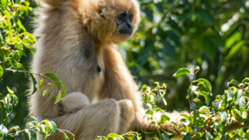 OPLEVELSE: Lille hvidkindet gibbonabe er kommet til verden i Fuengirola. Det er det eneste sted i Spanien, hvor man kan se lige præcis dén primat.