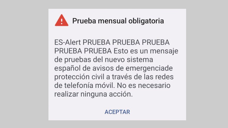Indenrigsministeriet gennemfører gennem Generaldirektoratet for civilbeskyttelse og nødsituationer test for at kontrollere, om ES-Alert-protokollen til udsendelse af alarmer til befolkningen fungerer.