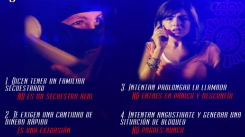 I løbet af 2019 registrerede det spanske nationalpoliti i alt 130 tilfælde af såkaldte “virtuelle kidnapninger” i hovedsageligt i Madrid, Cantabria, Zaragoza og Valencia. Heraf blev der i de fem blev betalt penge, og kun to af overførslerne kunne annulleres.