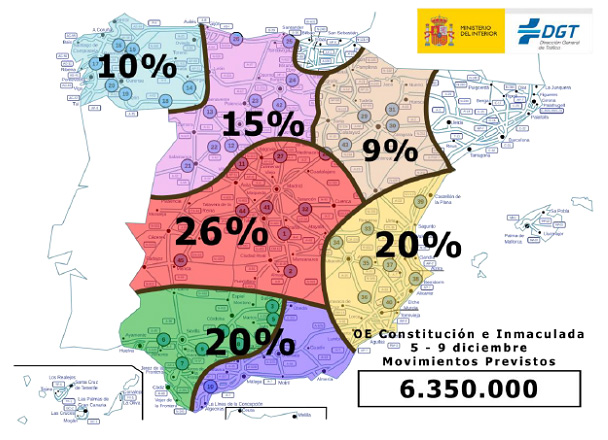 'Puente de la Inmaculada', som miniferien kaldes, giver ekstra meget trafik på vejene, og myndighederne forventer da også over seks millioner kørte ture.