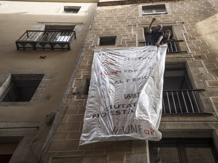 Endnu en ulovlig feriebolig blev afsløret, da aktivister fik nys om ulovligheden og hængte et kæmpe banner ned fra vinduet.