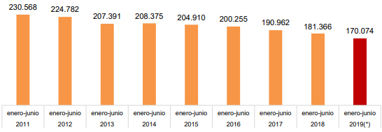 I alt døde 215.478 personer, hvilket var 5,4 procent færre end i det første halvår af 2018.