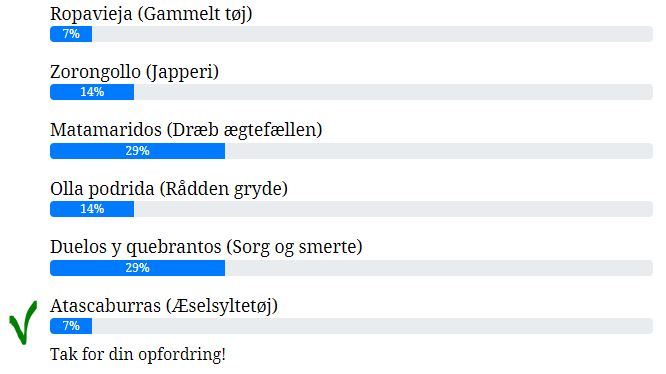 Vi tilbød, at du kunne vælge, hvilken opskrift du gerne ville have Carmen skulle lave til dig. Alle blev valgt men med forskellige antal stemmer. Vi bringer dog dem alle, men i rækkefølge efter, hvor mange stemmer de fik.