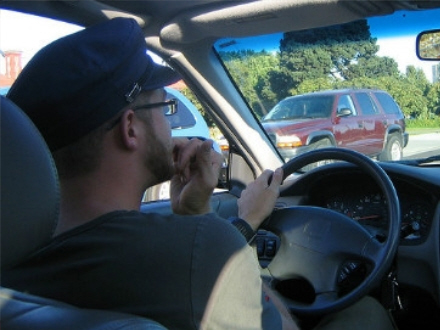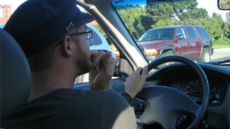 Han var ved at åbne en pakke tyggegummi, mens han kørte bil. Det bliver interessant at se, om vi nogen en dag for en bøde for at pille bussemænd.