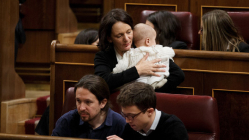 Carolina Bescansa har både høstet ros og kritik for at tage sin søn med på arbejde. Mange af kritikerne argumenterer med, at der er en ansat personale til at passe kongresmedlemmernes børn, mens de er på arbejde.