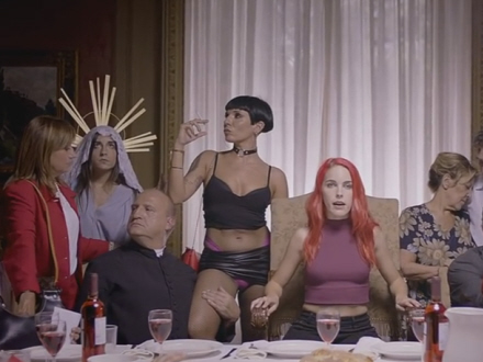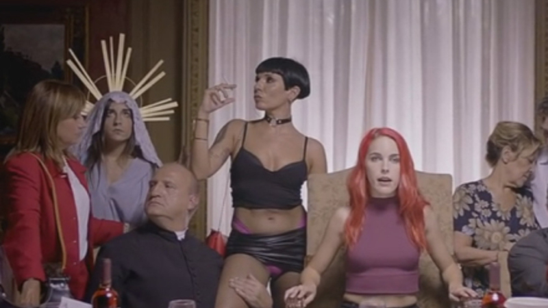 Pornostjernen Amarna Miller spiller hovedrollen i vidoeen, der sender en sønderlemmende kritik af det spanske samfund.
