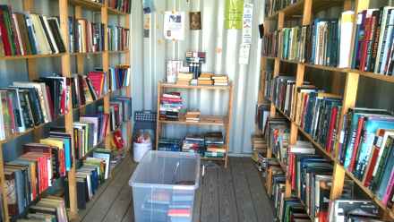 Bag spillerne på billedet herover ser du en grøn container, hvor klubbens stole, borde, parasoller og kaffemaskinen opbevares.