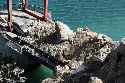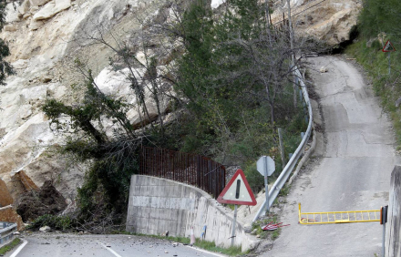 Jesús María Sánchez fik afspærret tilkørselsvejen til Valencia fra Cortes de Pallas minutter før det hel brasede sammen og vejen blev begravet under kæmpe store klippestykker og forårsagede store skader på et Iberdrola-kraftværk.