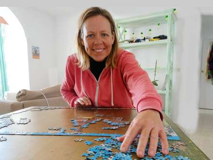 LIVET HJEMME: Alexandra i Cádiz har fundet puslespillet frem, og vil feste med vennerne på mobilen.