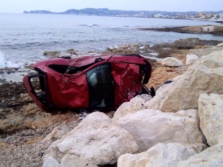 Bilens fører og hans medpassager - begge i 40-års alderen - slap med mindre skader og blev kørt til sygehuset i Denia.